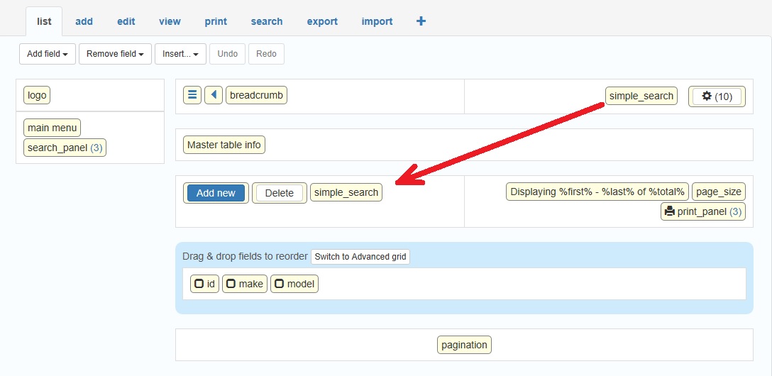 • search now works in detail preview ( on the details table list page drag simple search control to the cell with Add button, see the screenshot below );
